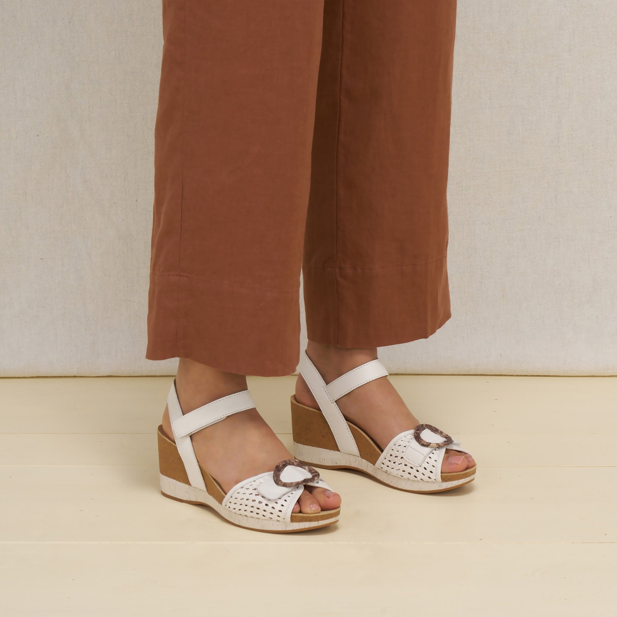 - Stella: From garden parties to graduation ceremonies, Stella brings comfort and style with every step. With soft leather, a lightweight cork-infused wedge, and easy hook-and-loop adjustability, it’s the sandal you’ll reach for all season long.